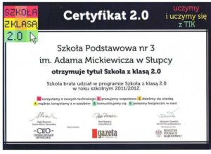 Certyfikat 2.0 – tytuł Szkoła z klasą 2.0