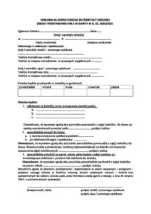 Karta zgłoszenia dziecka na świetlicę w SP3 w Słupcy