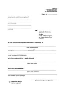 Zał nr 9 – informacja o zapisaniu dziecka